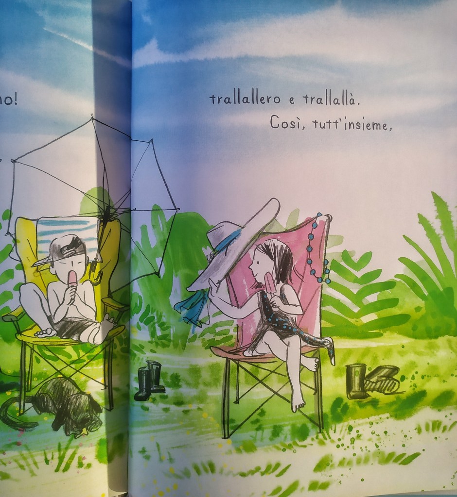 Alla fine di questa lettura è rimasta in me la sensazione che anche l’allegria come la lettura sia un piacere da trasmettere ai bambini, non viene sempre fuori in modo spontaneo, soprattutto in questo periodo difficile per le famiglie. Il finale di questo albo ci viene in aiuto:
