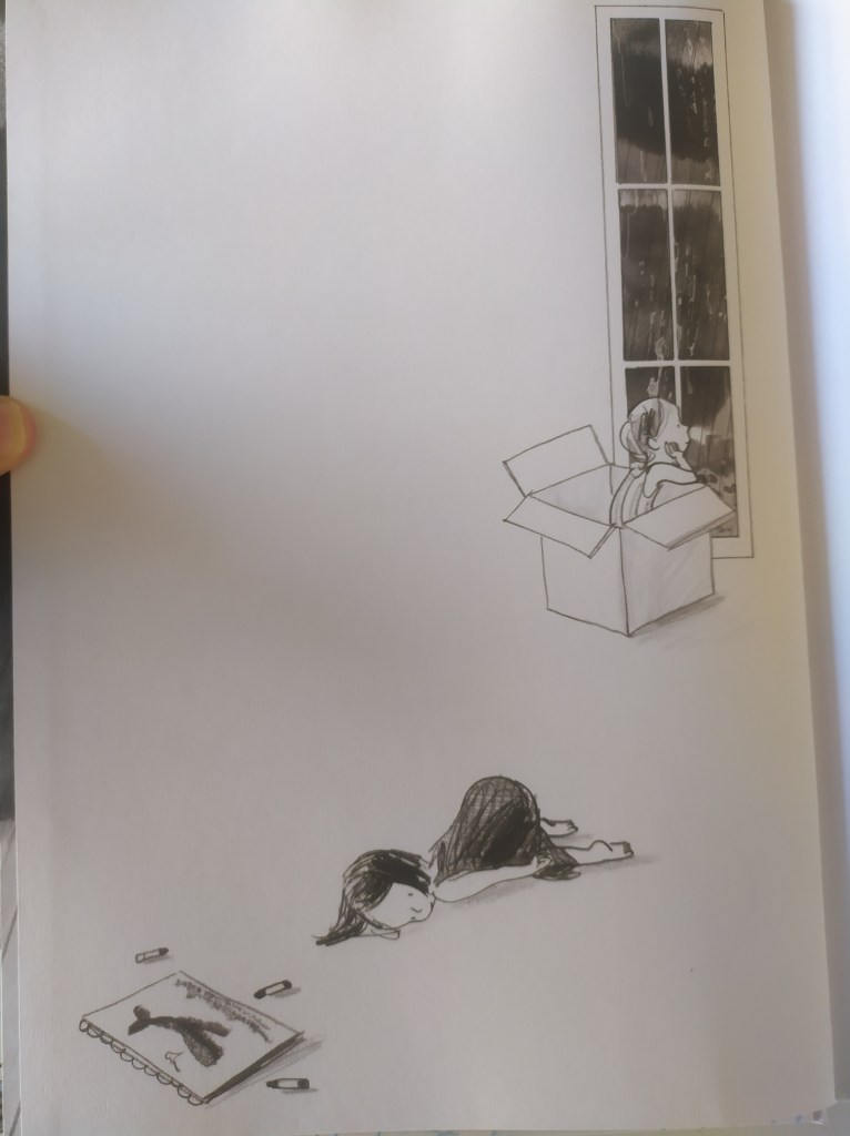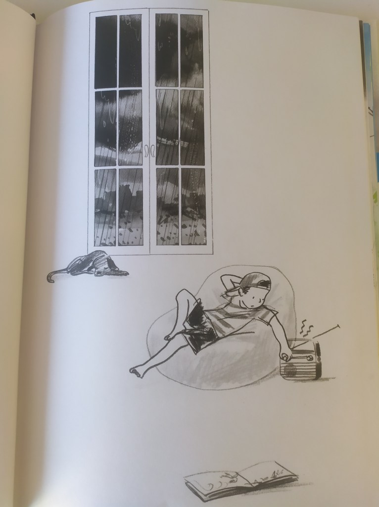 Sono partita dalle immagini che si trovano prima che inizi la narrazione della storia, chiedendo ai bambini cosa evocavano in loro quelle espressioni e quei disegni: “noia”, “pioggia infinita”, “un bambino che ascolta la musica da solo”, “una bambina svenuta”… Partendo da lì gli ho chiesto: “Ci credete che questi bambini stanno per vivere una splendida giornata???”. “NOOOOOOOOO”, in coro…ma la potenza degli albi è dimostrare che tutto è possibile!