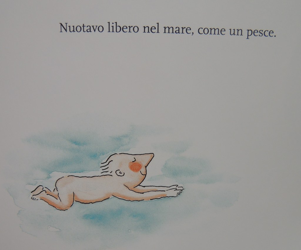 “Libero come un pesce” inoltre esprime benissimo il concetto del “voltare pagina” tanto importante nella meccanica dell’albo, ce lo spiegano bene nel saggio Ad occhi aperti: “Era qui che volevamo arrivare, al senso di sicurezza di un’attesa ripagata, alla vita di chi ci attende anche quando non lo vediamo.”