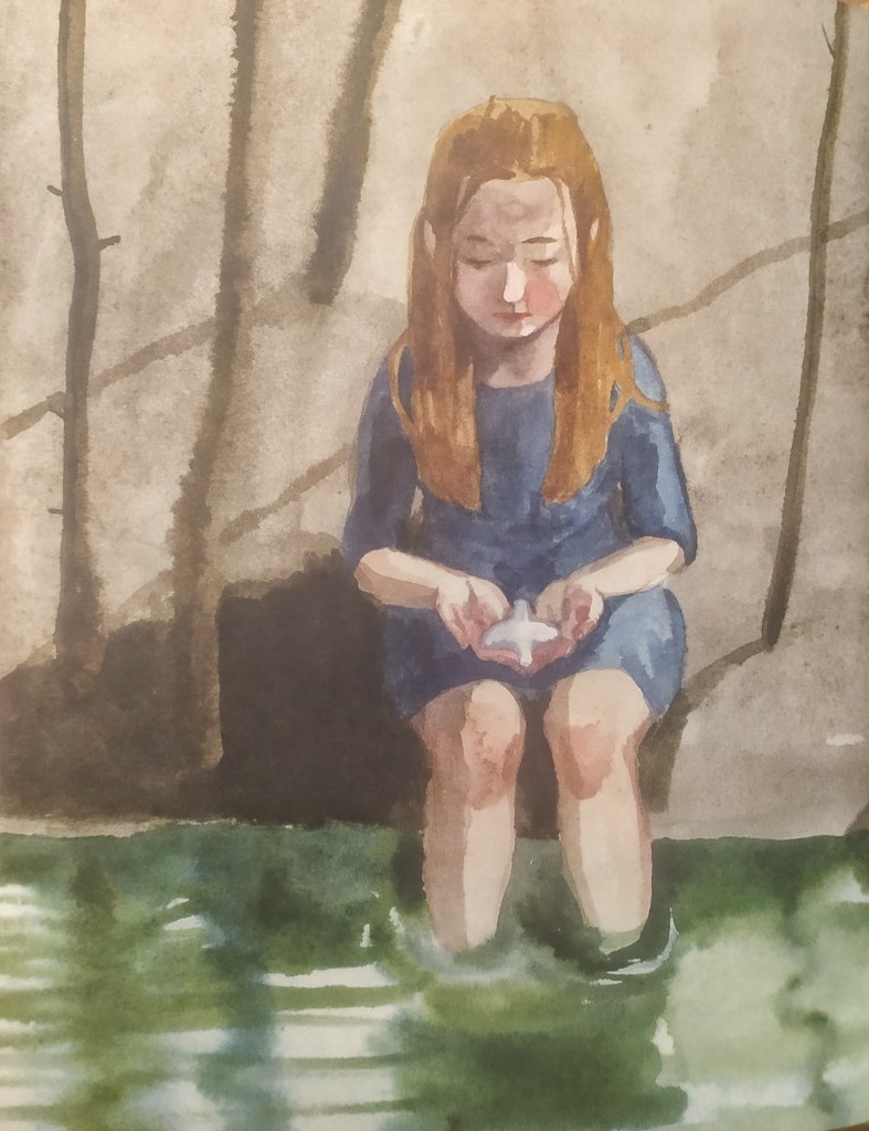 Torno di nascosto al grande fosso. L’argilla blu brilla sul fondo. Scavo. La creta prende forma senza che io decida nulla. Da sola. E all’improvviso: un tremito sul palmo. Il cuore di un uccellino che si mette a battere. Ali che cercano di liberarsi. Ho paura di stringerlo troppo, perciò apro le mani… E lui prende il volo!