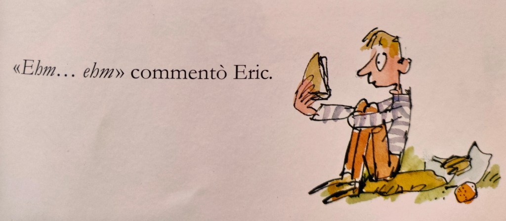 E chissà se Eric, il fantastico e straordinario personaggio di Quentin Blake, avrebbe qualcosa da dire allo sbagliato e al piegato, al ragno e al pipistrello: “ehm ehm…”.