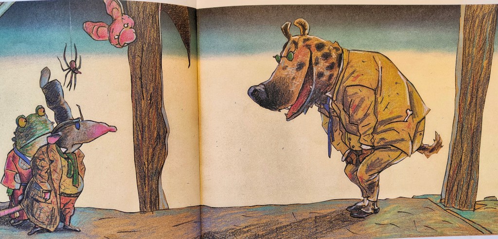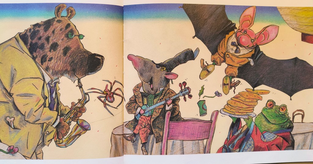 Oppure penso alla iena, meraviglioso personaggio creato da Wolf Erlbruch, mentre suona il suo sassofono in “modo così incantevole” al molle e al bucato, due dei 5 malfatti.