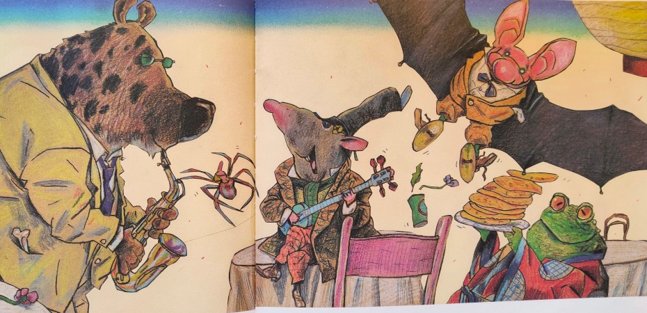 Oppure penso alla iena, meraviglioso personaggio creato da Wolf Erlbruch, mentre suona il suo sassofono in “modo così incantevole” al molle e al bucato, due dei 5 malfatti.