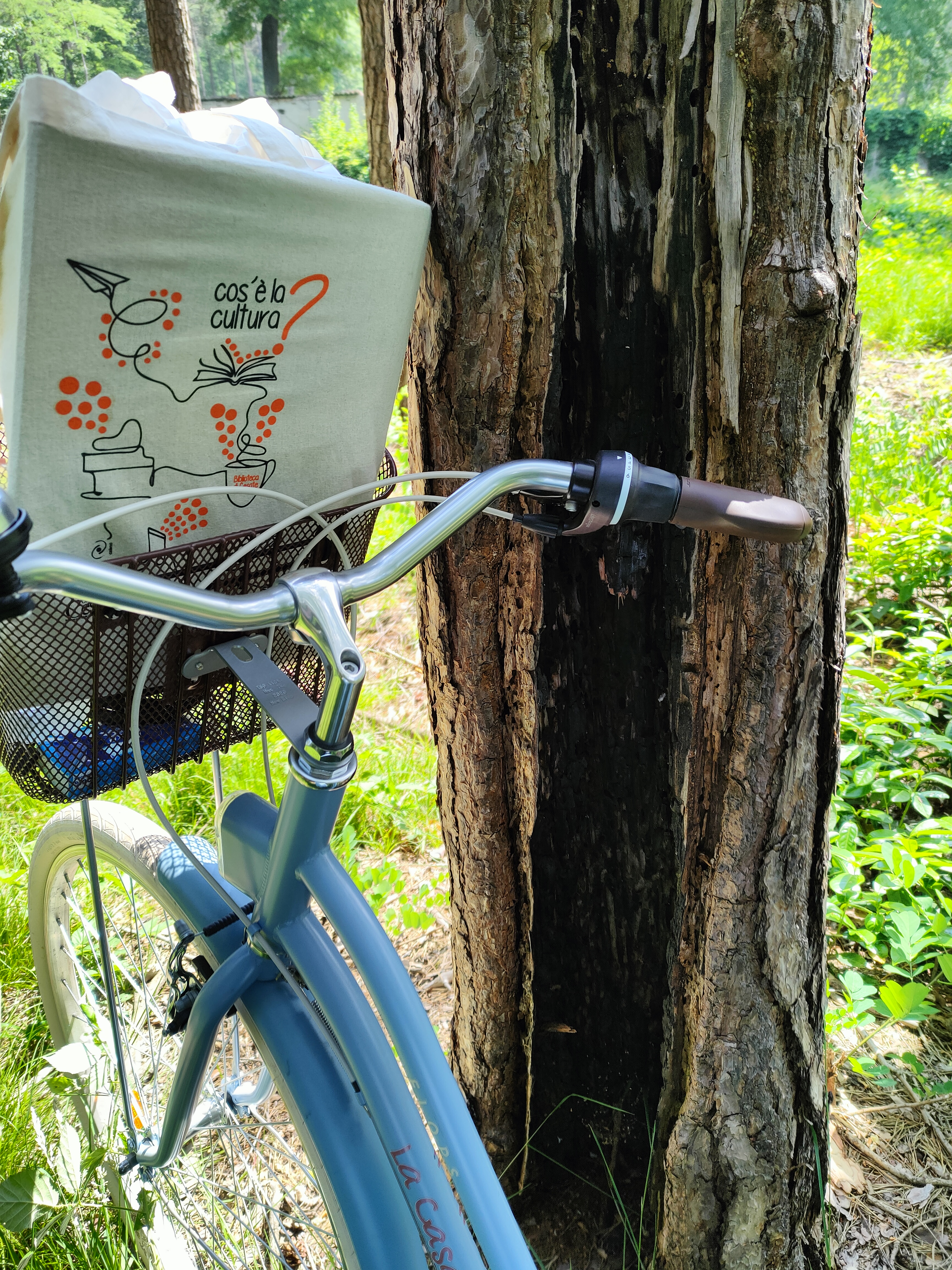 Sabato mattina, la mia bici, il bosco. La prima fermata a prendere il pane, la seconda a lasciare i libri in biblioteca e sceglierne uno, uno soltanto, da inserire nella sacchetta.