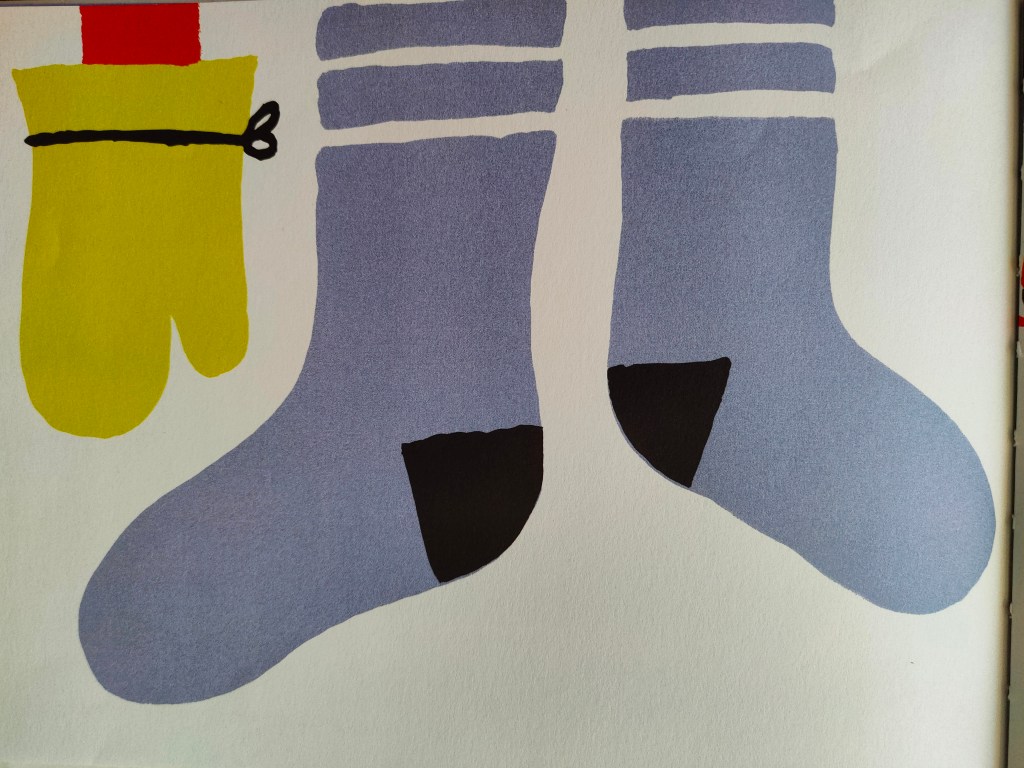 Il secondo albo invece ci narra il flusso di pensieri di un bambino che nemmeno la voce adulta e frettolosa del mattino riesce a interrompere. Gli ordini sono familiari e quotidiani: “È ora di alzarsi!, Mettiti la camicia, quella gialla, Ora lavati le mani, tutte e due, e bene!, Ora metti calze e scarpe, Calze e scarpe! Muoviti, presto! Dai! Per favore!”.