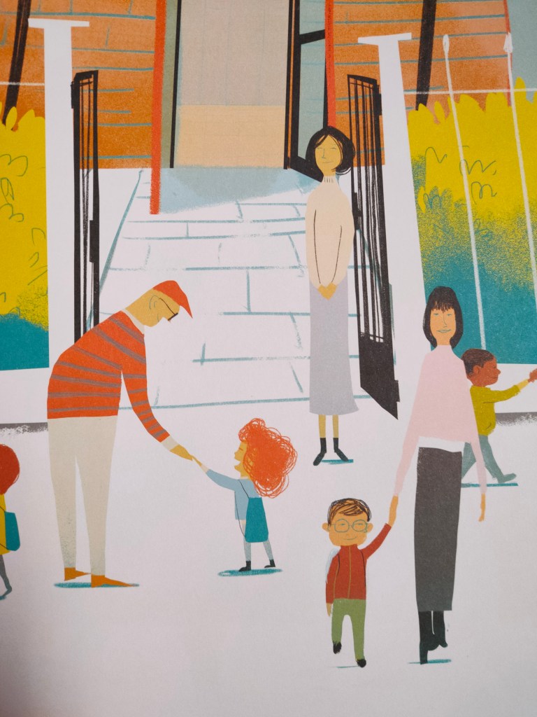 Quanti genitori si ritroveranno in questa semplice storia, realismo del nostro tempo. Le ore lontani da casa, il lavoro che non sempre ci permette di dare ai nostri figli il tempo di qualità che spesso riescono a trovare altrove. E non a caso questo albo ha vinto quel premio, perché c’è tato cuore e realismo. L’idea dello zainetto è “stato quindi fin dall’inizio il centro della narrazione”.