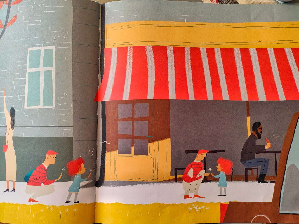 Si tratta de Lo zainetto di Matilde, vincitore (ricordiamolo!) del Silent Book Contest Gianni de Conno Award: è un bellissimo albo senza parole che racconta i dolci e reali momenti di cura di un nonno con sua nipote. L’ho letto a casa con i miei figli di età da primaria, ma anche nella scuola dell’infanzia dove lavoro, con i più piccoli. La bellezza di questo albo infatti è che può avere vari livelli di narrazione in base alla fascia di età.