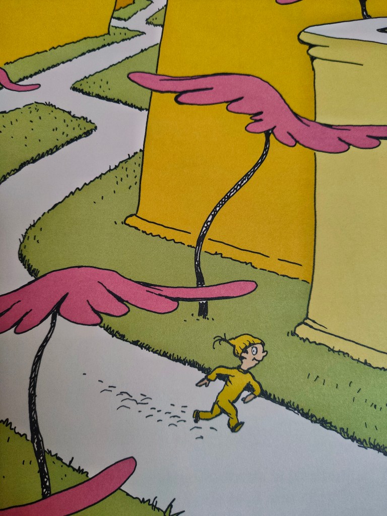 Non so se questo libro iconico assolverà a questo compito e non so nemmeno se è un regalo più per me o per il bambino a cui è destinato, ma una cosa è certa: tutti abbiamo bisogno del dottor Seuss almeno una volta nella vita. Per sentirci dire forte e chiaro che OGGI È IL NOSTRO GIORNO, che siamo in cammino verso “Luoghi Importanti”, scritto proprio così, in maiuscolo, perché è giusto valorizzare il cammino di ciascuno. Amo questo albo illustrato perché ti presenta con leggerezza tutte le possibilità della vita ma senza banalità e senza retorica. Se avessi 11 anni oggi, vorrei tanto saperlo cosa mi aspetta là fuori.