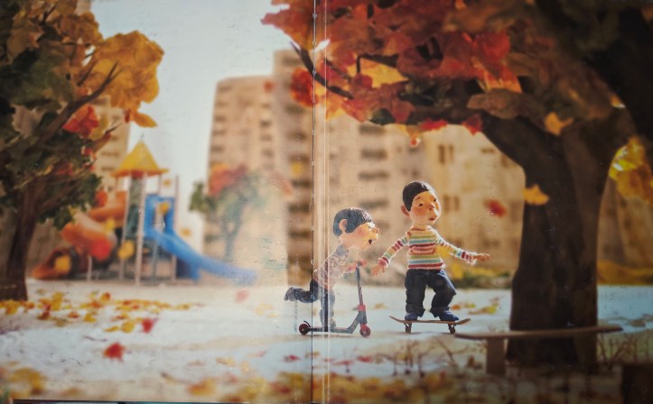 Heena Baek, l’autrice di questo albo, è un’artista che crea i suoi personaggi, riesce a plasmarli così bene che tutte le sfumature delle emozioni e della narrazione non hanno niente da invidiare al disegno classico. Anzi, l’idea di fotografare le storie in ambientazioni vere e con prospettive realistiche rende l’esperienza di questa lettura davvero unica.