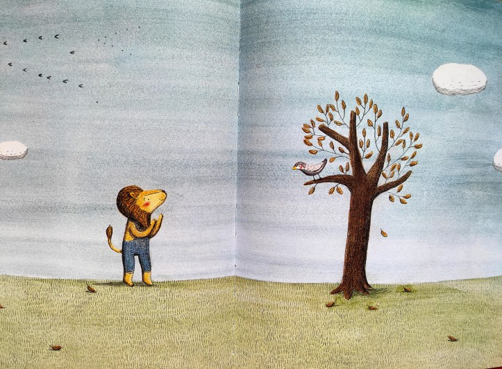 Qualche esempio: Max nel “Pese dei mostri selvaggi” di Sendak si arrabbia e con un sogno-viaggio avventuroso scopre infine che senza la sua cameretta e la cena calda della mamma potrebbe sentirsi molto più solo che arrabbiato; il bambino di “Un grande giorno di niente” della Alemagna scopre cos’è la solitudine passando da fango, pioggia, insetti e meraviglia per approdare più consapevole e aperto al dialogo di fronte a una tazza calda con la sua mamma; “Il leone e l’uccellino” di Marianne Dubuc narra il dolore di un distacco, triste ma necessario, con delicatezza e tanta bellezza sia nelle parole che nelle immagini; i libri di Sam Usher raccontano la gioia e la felicità dello stare insieme come qualcosa di prezioso, con la pioggia, la tempesta, la neve, il sole…come a ricordarci che ogni momento è giusto per sentirsi vivi e condividere momenti insieme, usando l’immaginazione e una fantasia intelligente e per niente banale.